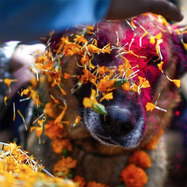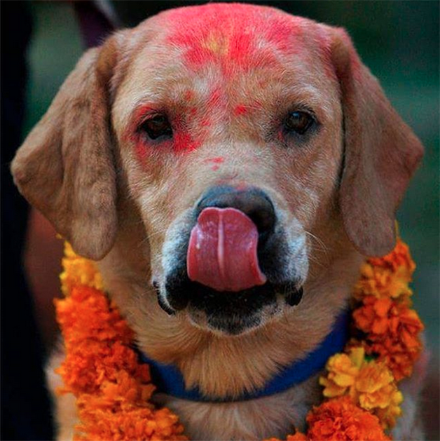 A celebração é uma cerimônia religiosa Hindu e é chamada de Kukur Tihar ou Khichã Pujã. O festival, que acontece no Nepal, todo outono, tem 5 dias de duração, sendo um deles especialmente dedicado aos nossos fieis e melhores amigos cães, exatamente para comemorar a amizade e lealdade dos bichinhos.